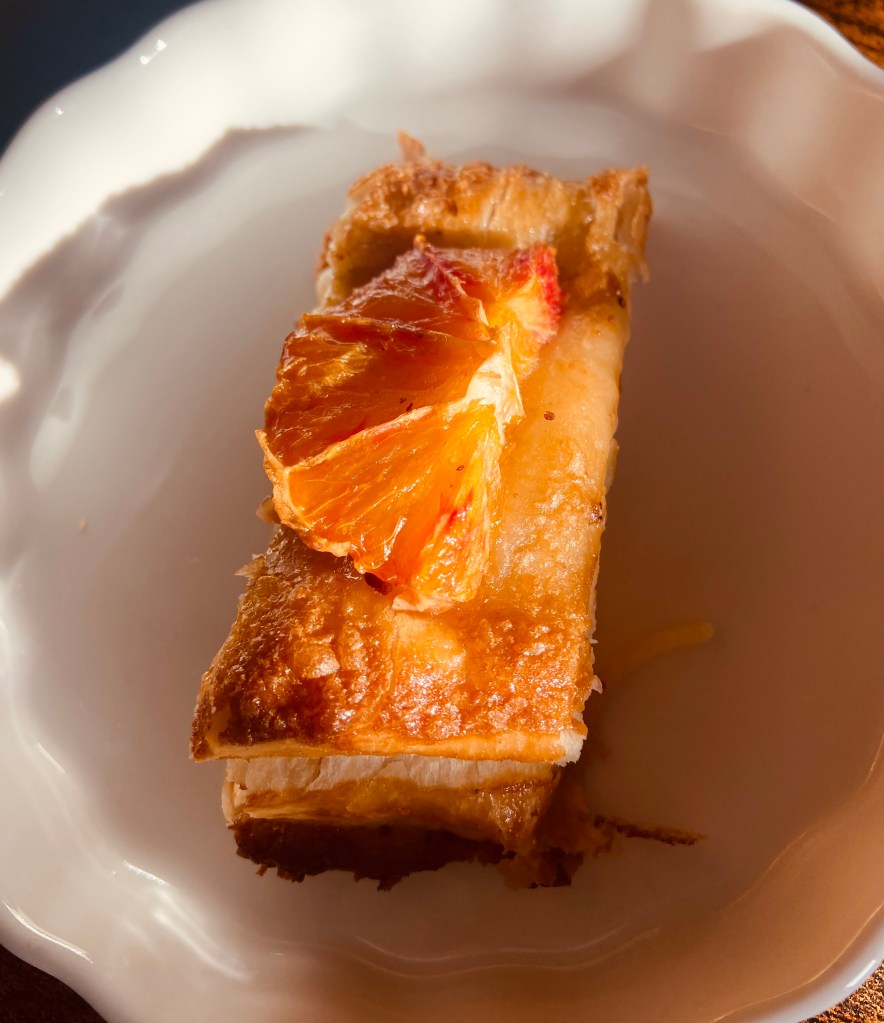 Lo “strudel all’arancia”, non saprei come altro chiamarlo, è basico nell’esecuzione, ma il risultato stupisce per l’armonia di sapori. E’ un dolce stagionale, ideale per il freddo e buono come fine pasto o accompagnamento per il thé del pomeriggio. E’ anche bello da vedere, dettaglio che non guasta mai.